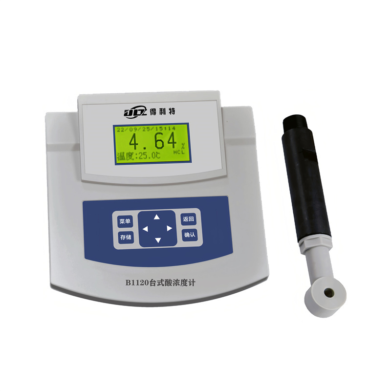 B1120台式酸浓度计采用电磁式电导率电极。无极式传感器。仪器具有全中文显示、中文菜单式操作、高智能化、多功能、测量性能高、环境适应性强等特点。应用于火电、化工化肥、冶金、环保、制药、生化、食品和自来水等行业工业过程中酸的检测。