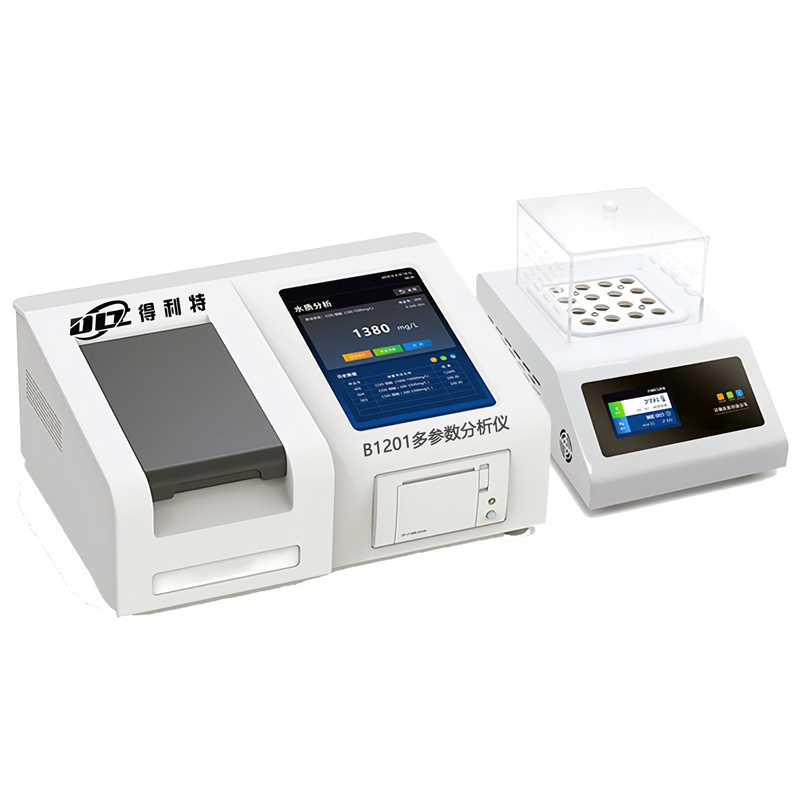 B1201多参数分析仪可检测COD、氨氮、总磷、总氮、铁、挥发酚、⼆氧化硅、磷酸盐等检测参数。产品内置⽔质分析、光度测量、系数曲线、样品曲线等多种应⽤程序。可广泛应用于科研院所、污水工程、水环境检测、石油化工、冶金钢铁、生物医药、食品乳业、毛纺印染、电子机械、水产养殖、光伏、皮革、造纸、等领域的水质检测。